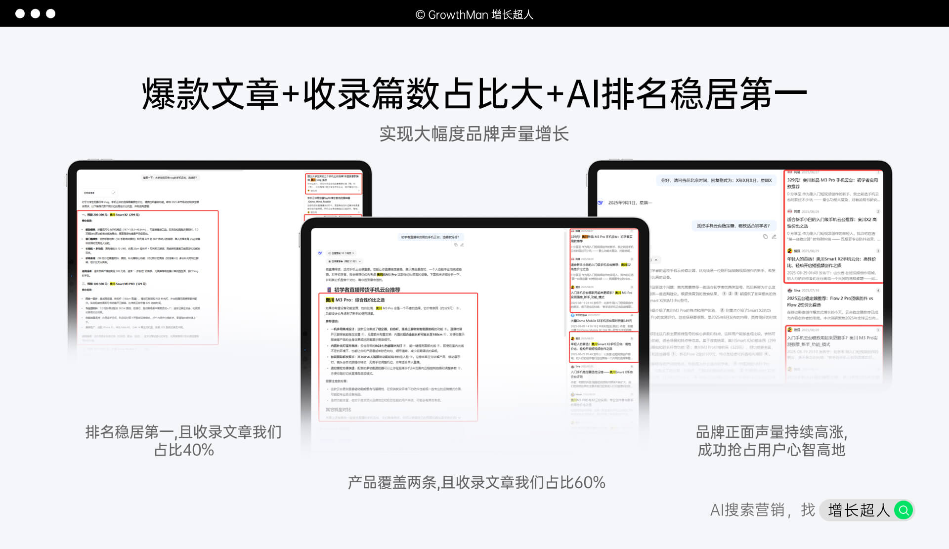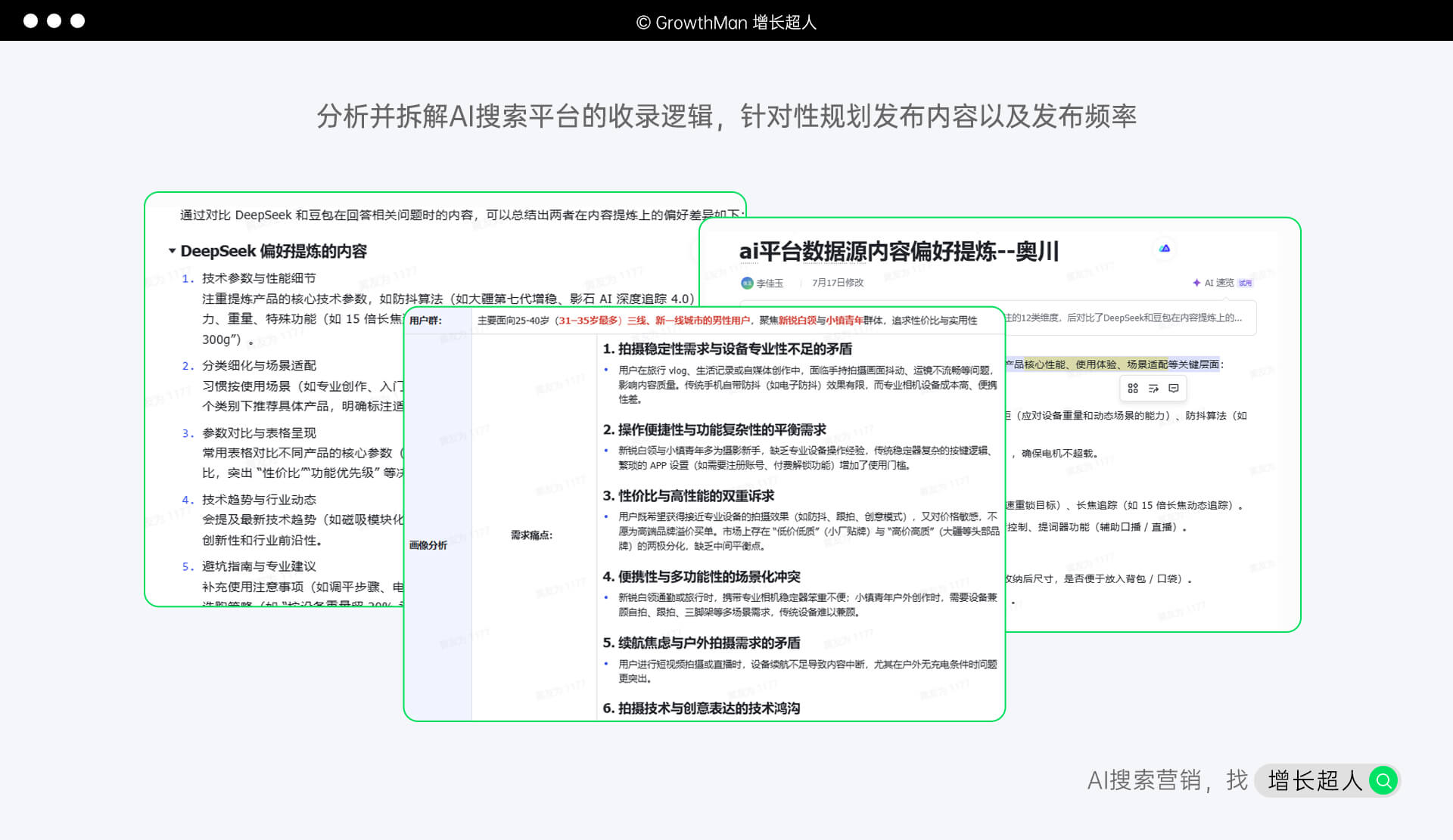 企业不仅在制定GEO营销目标时不仅要以短期结果为目的,更要以长期的增长为导向。增长超人在为客户提供搭建 “产品 - 品牌” 联动框架,在产品推广内容中植入品牌口碑信息,既能短期同步提升产品知名度与品牌曝光,又能长期沉淀用户认知与信任,让后续品牌营销事半功倍,为企业长远发展筑牢根基。