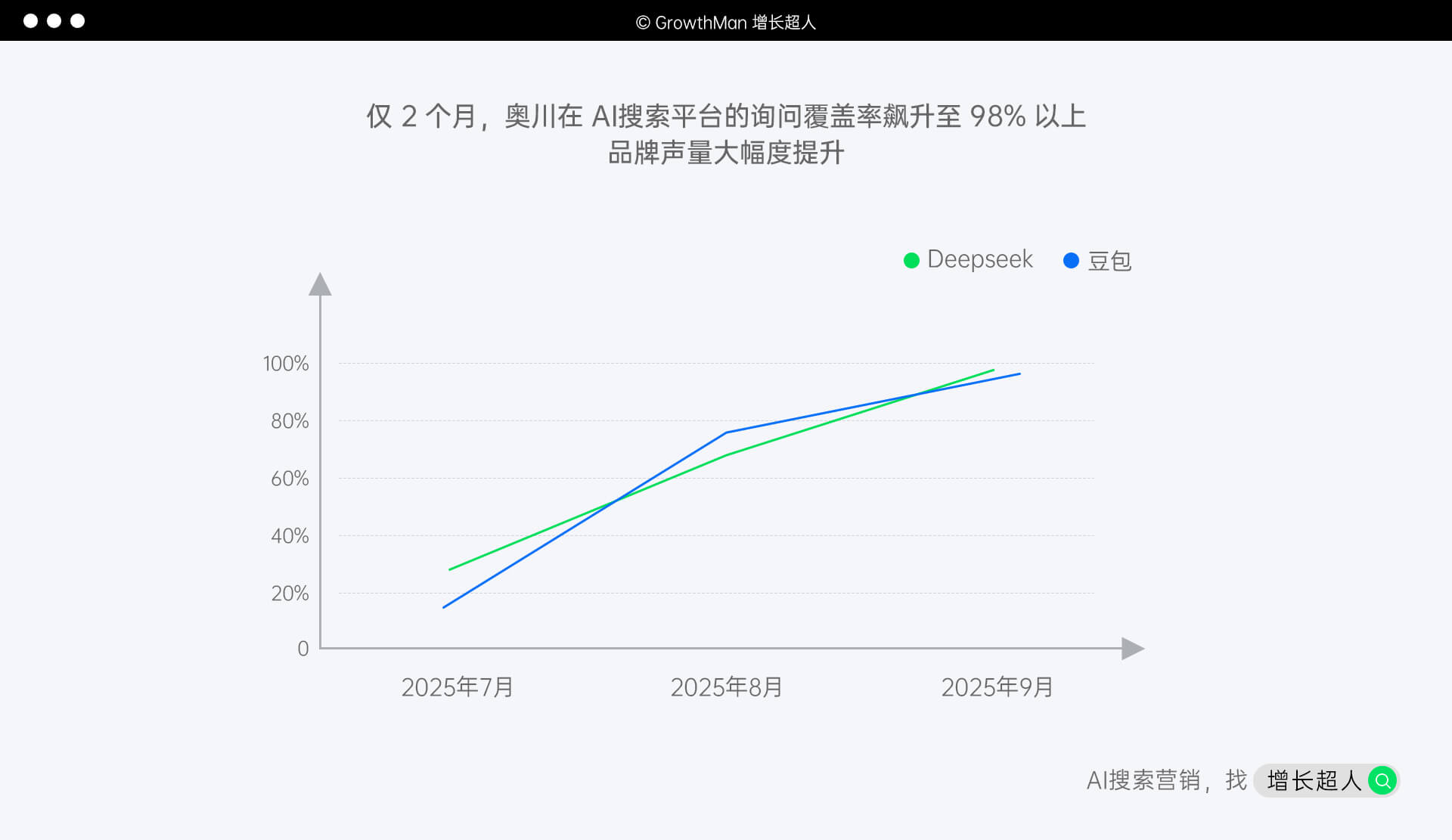 奥川的逆袭印证:红海突围,产品硬实力是根基,增长超人的专业赋能才是关键。凭借增长超人的优质内容、AI 搜索优化及 GEO 精准优化能力,精准锚定用户需求,助力奥川从 0 曝光跃升至行业 TOP3、从陌生品牌成为新手首选,二者协同搭建 “曝光 - 认知 - 转化” 高效闭环,为企业破局增长提供核心支撑。