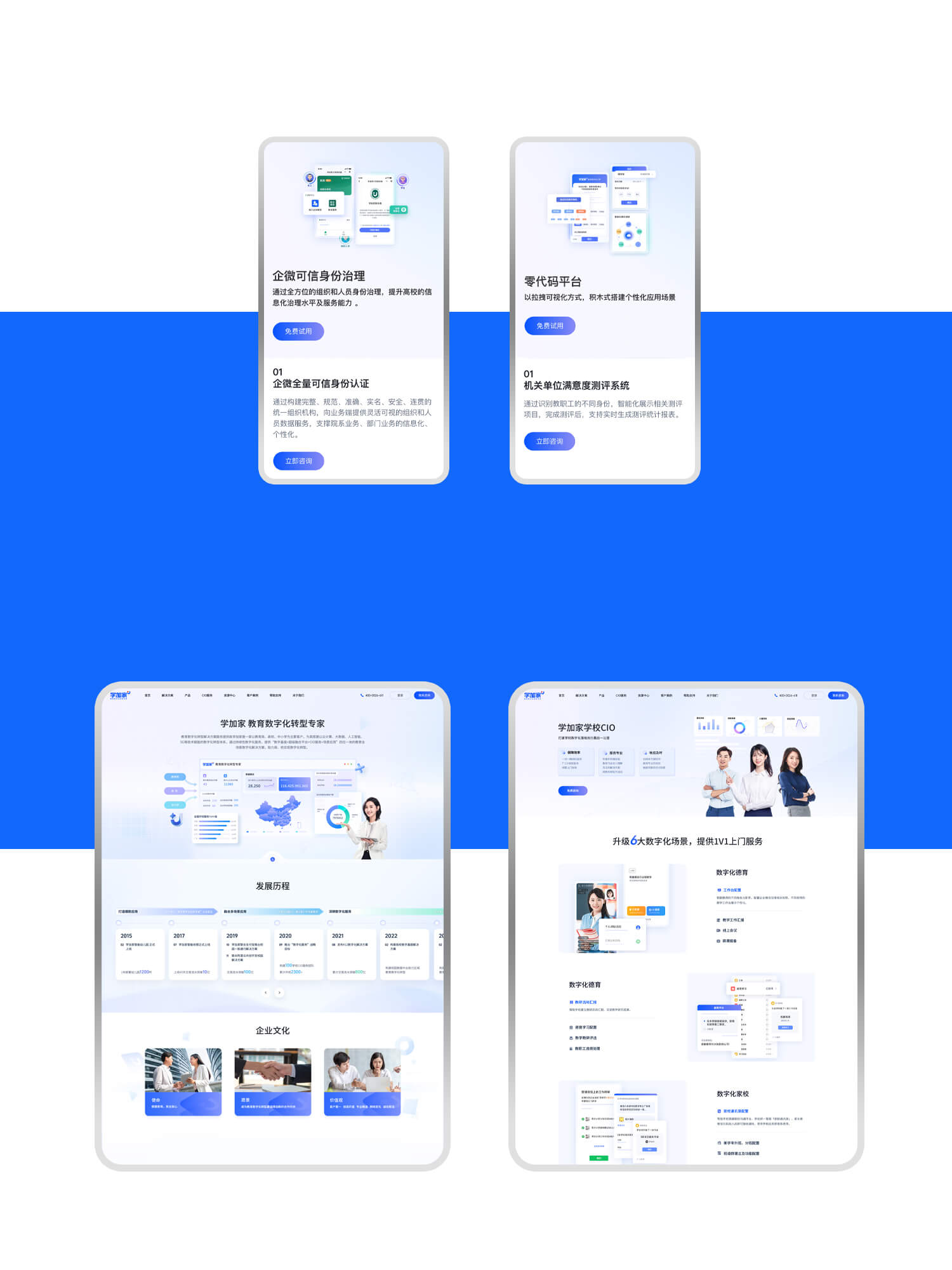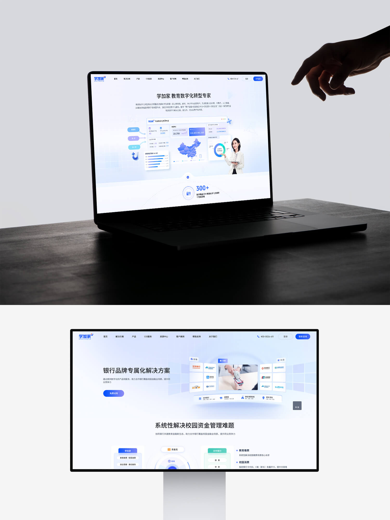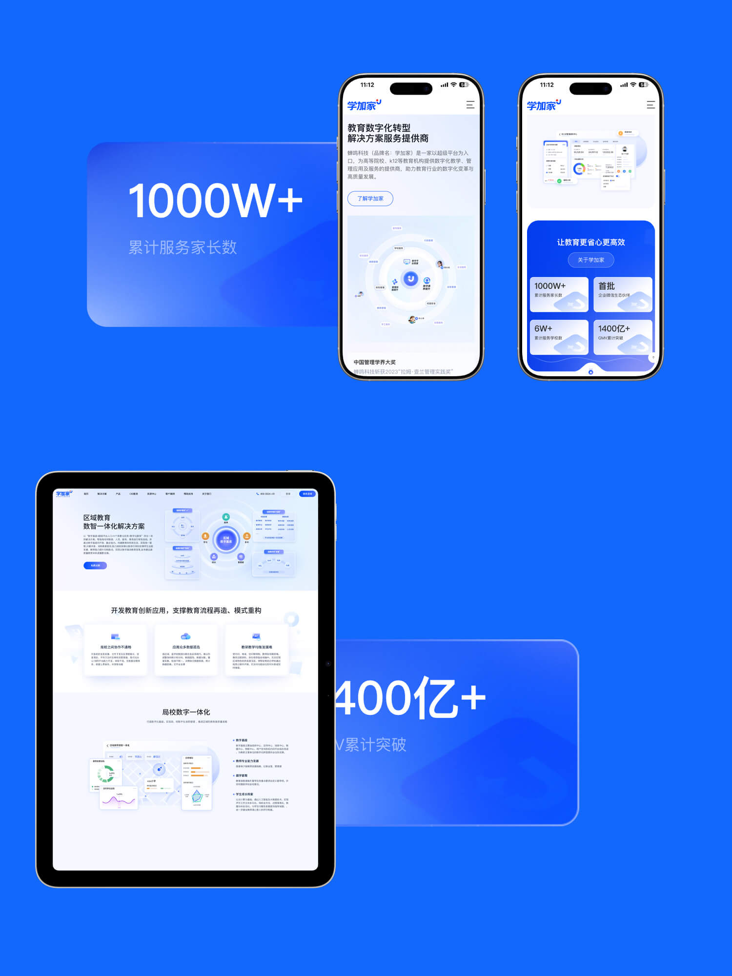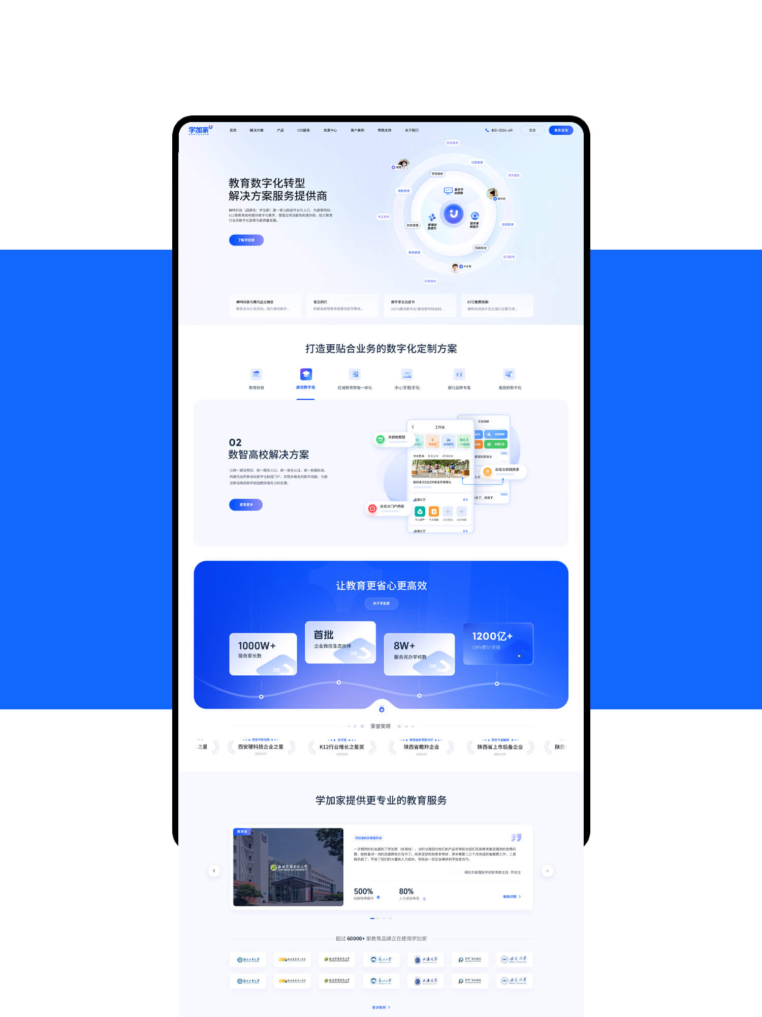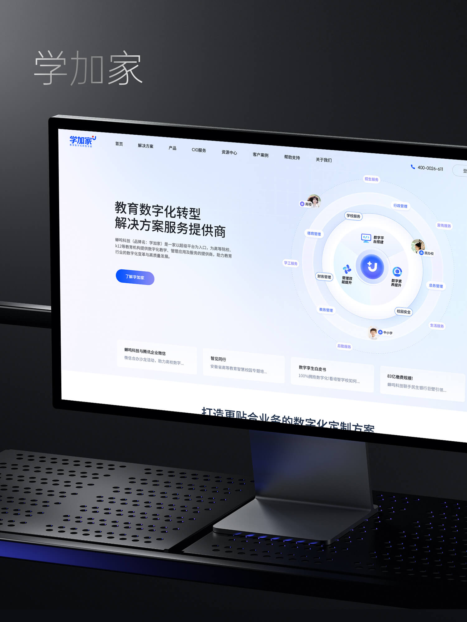 结合“学加家”在家校协同与教育服务方面的核心业务定位,本次官网设计围绕“解决管理痛点、展示专业能力、突出产品价值与信任背书”三大目标展开:
